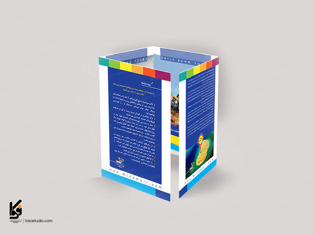 بروشور خلاقانه : استفاده از خط تیغ ها و تا های خلاقانه که جلوه بصیری بهتری به بروشور شما می دهد. از انواع آن میشود به آکاردونی ، سه بعدی ، مثلثی و … اشاره کرد.
